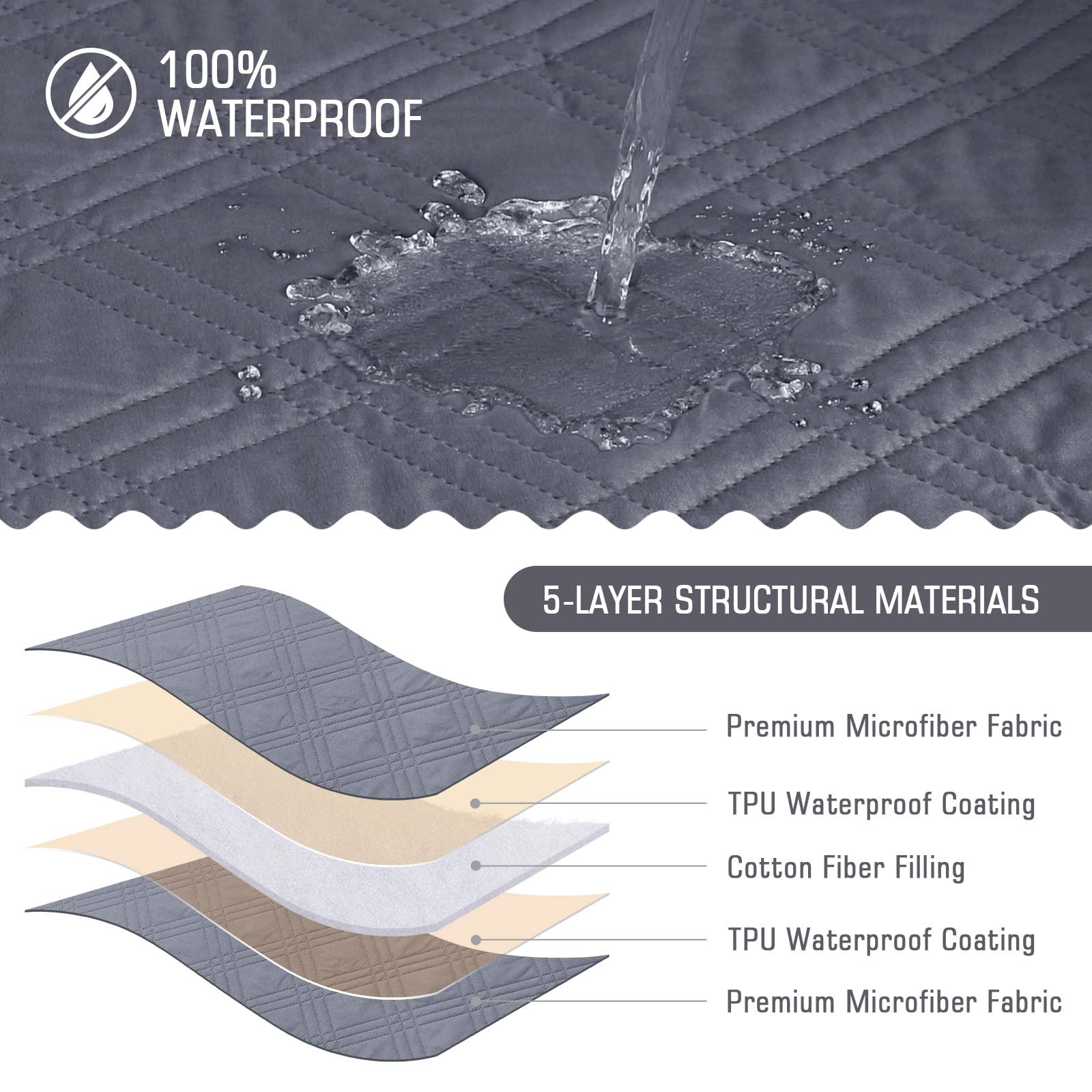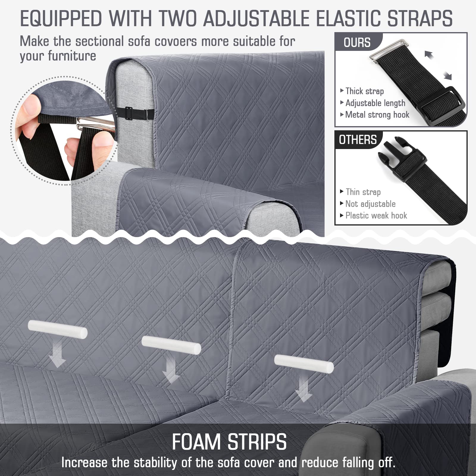 • 100% Waterproof: We use high-grade fabric to undergo waterproof treatment by coating a waterproof layer on the top and the back, to ensure our L shaped sofa cover provides 100% guaranteed waterproof and leak-proof features. This new waterproof feature (can be tested), is a great way to protect your sofa from any drinks, spills, daily wear and tear. Making sure your furniture are clean at all times.