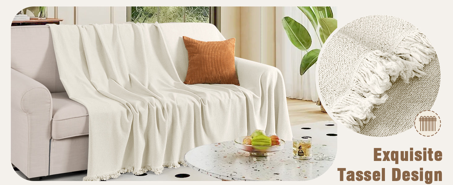 Couch Cover Blanket with Tassels for 3 Cushion Couch