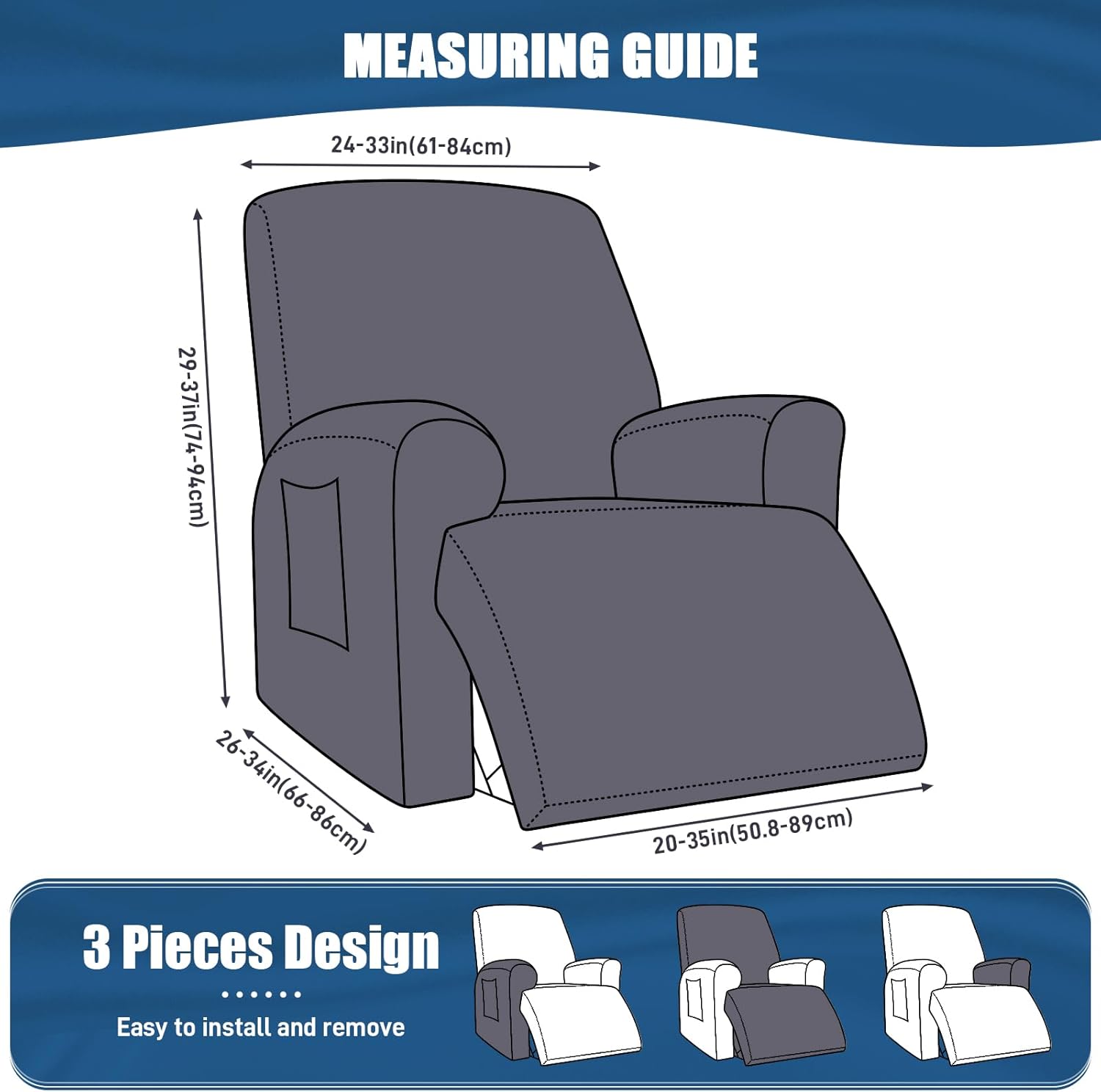 3-Piece Stretch Polyester Covers for Large Recliners - 1 Seat/2 seat/2 Seat Oversized/3 Seat