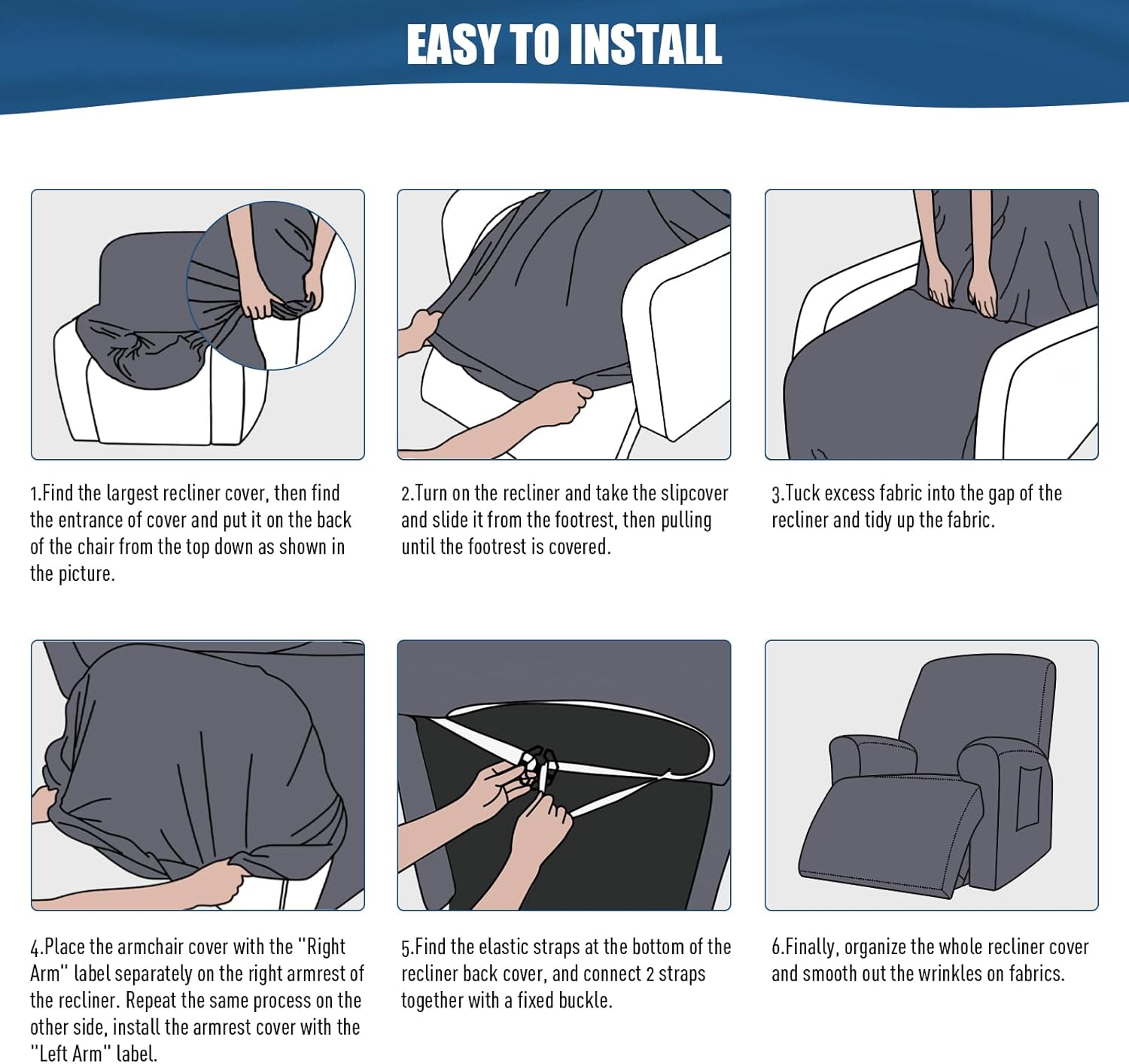 Easy to install, our covers come with a user-friendly design that allows you to transform your reclining chairs in minutes. Plus, they’re completely removable, so you can switch up your décor whenever the mood strikes. Whether you're hosting a family gathering or just curling up for a cozy movie night, these stretch covers will keep your recliners looking fresh and inviting.