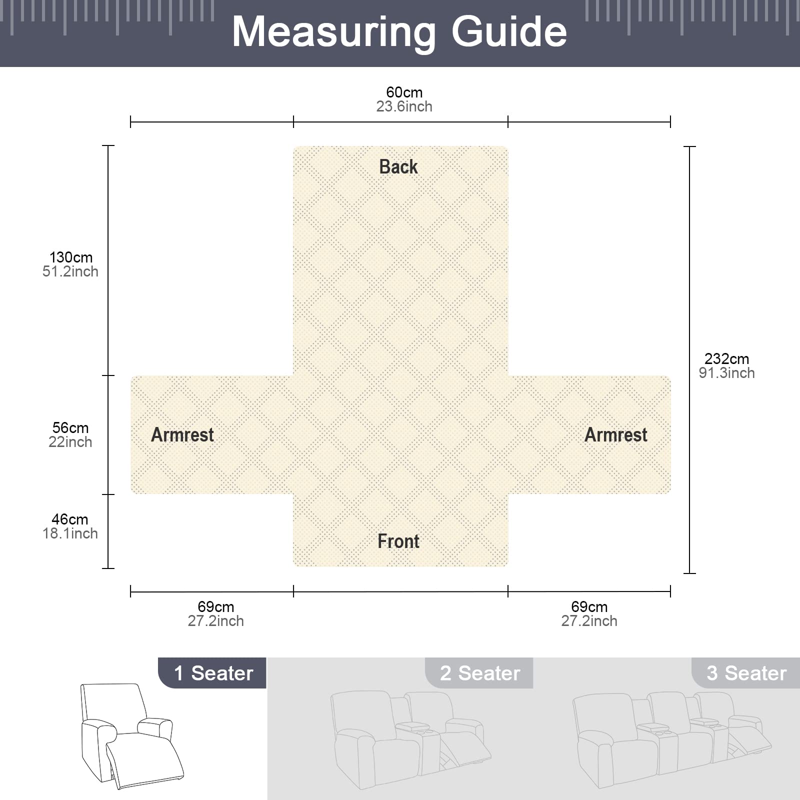 - 【DIMENSIONS GUIDE】 Small pet recliner cover fit a chair with a seat width of 23.6 in, see measurement guide in photos. NOTE: Please confirm the size before purchasing.(Due to some lighting reasons, the color of each display will be different, so please refer to the actual color.)