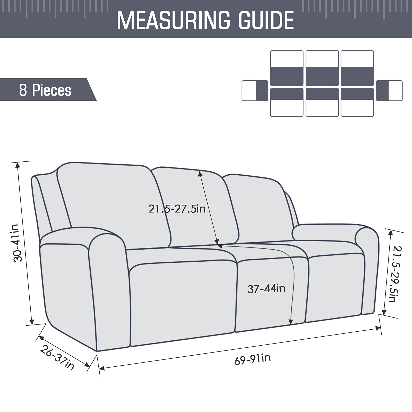- Recommended Size. Super stretchy feature make the slipcovers are suitable for most 3 seats recliner styles. Fit for sofa with a total length: 69-91 in, height: 30-41 in. Please follow the detailed information about the measurement guide, confirm the size before purchasing.