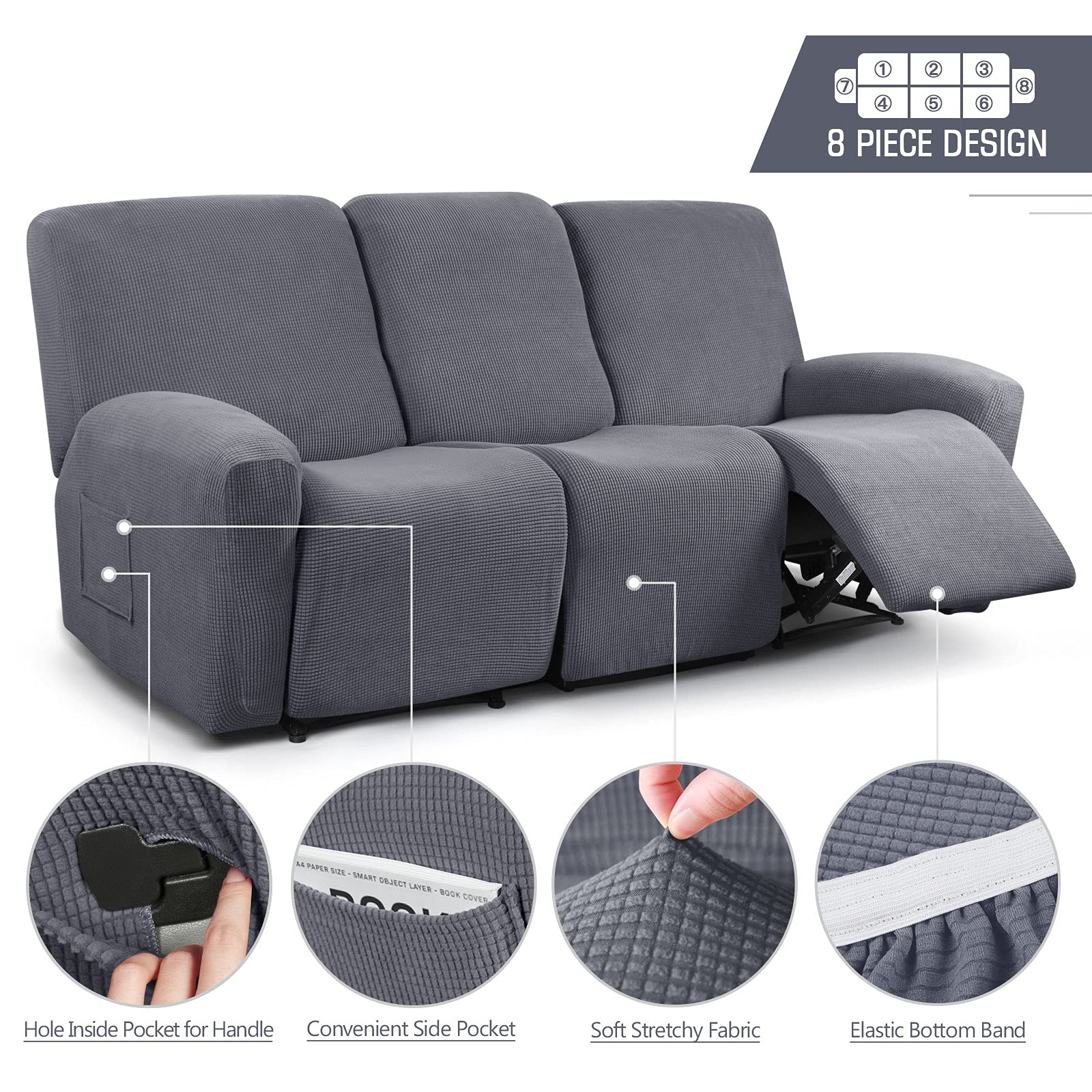 TAOCOCO Sofa Recliner Cover 8 Pieces Stretch Couch Slipcovers Furniture Protector for 3 Seat Couch Sofa