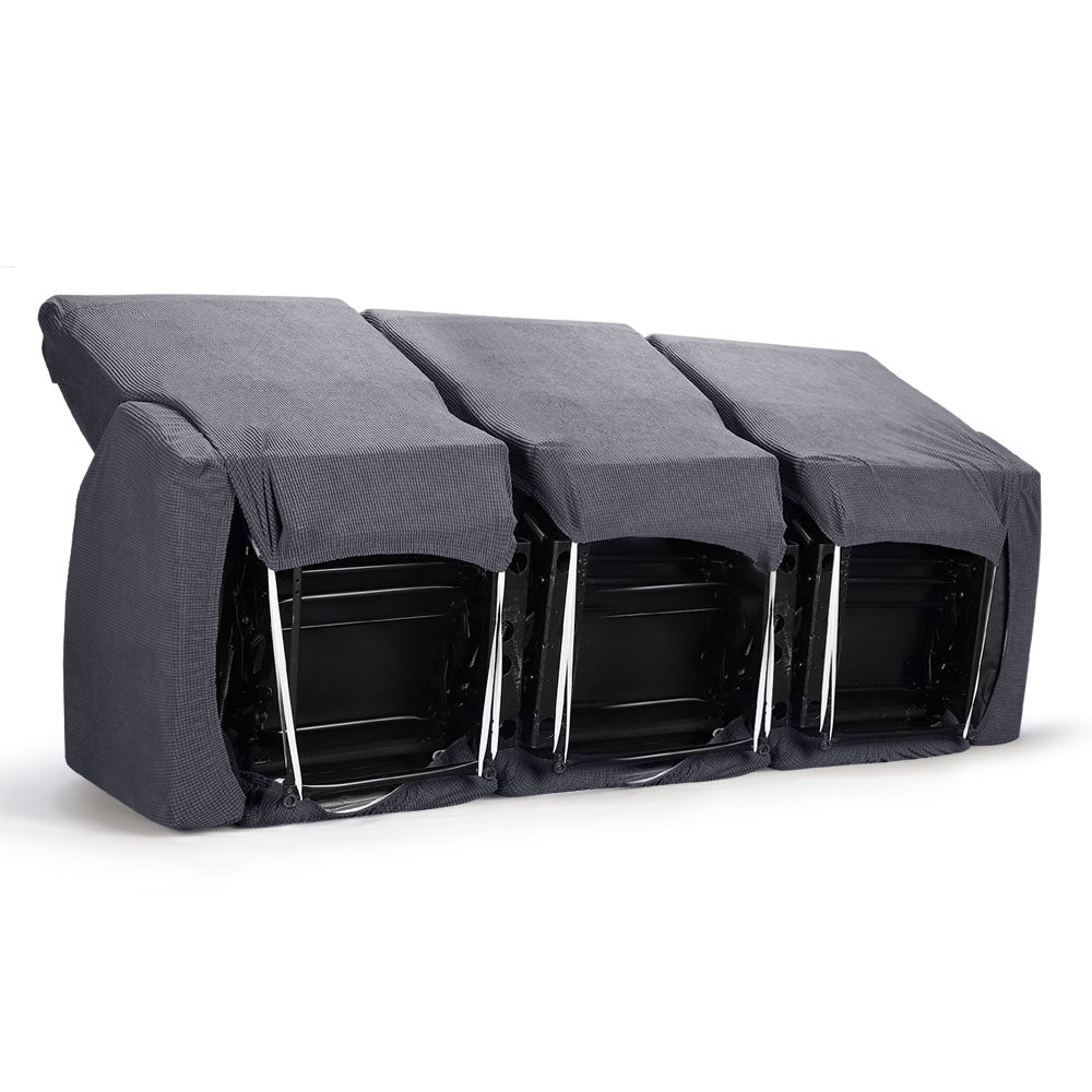 - Perfect Fit. Come with 8 pieces cover totally, including 3 seats covers, 3 cushions cover, 2 arms cover. Equipping with bottom elastic and 2 adjustable reinforcement straps, make the cover stay in place well without moving. One side pocket design, with a hole inside the pocket for the recliner handle. Convenient to put your remote control, glasses or any small items on slide pocket for easy access.