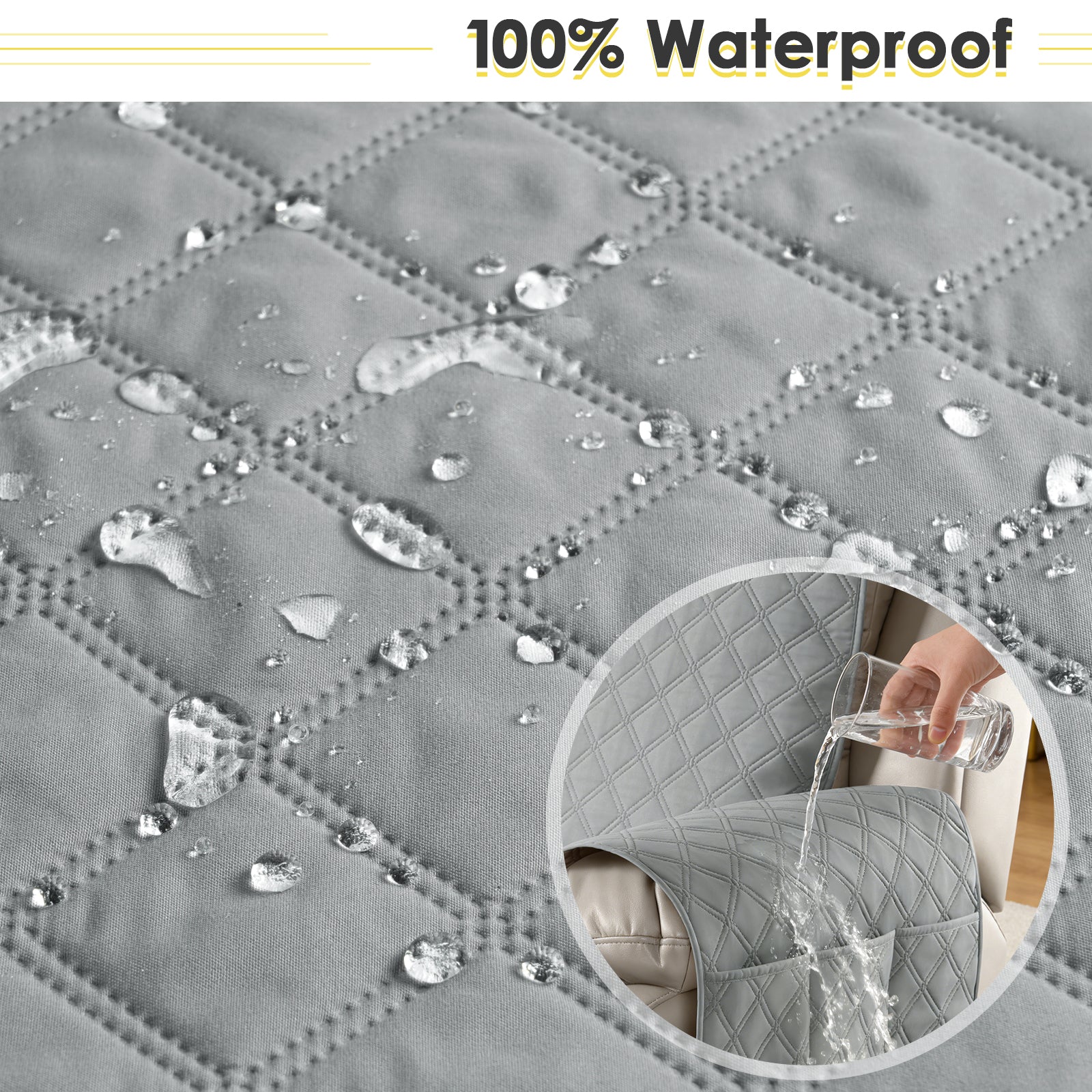 TAOCOCO 3 Seater Recliner Covers,Armchair Slipcovers,Waterproof Recliner Protector,Armchair Covers with Pockets,Anti Slip Reclining Sofa Covers,Arm Chair Covers for Pets/Dogs (Light Grey)
