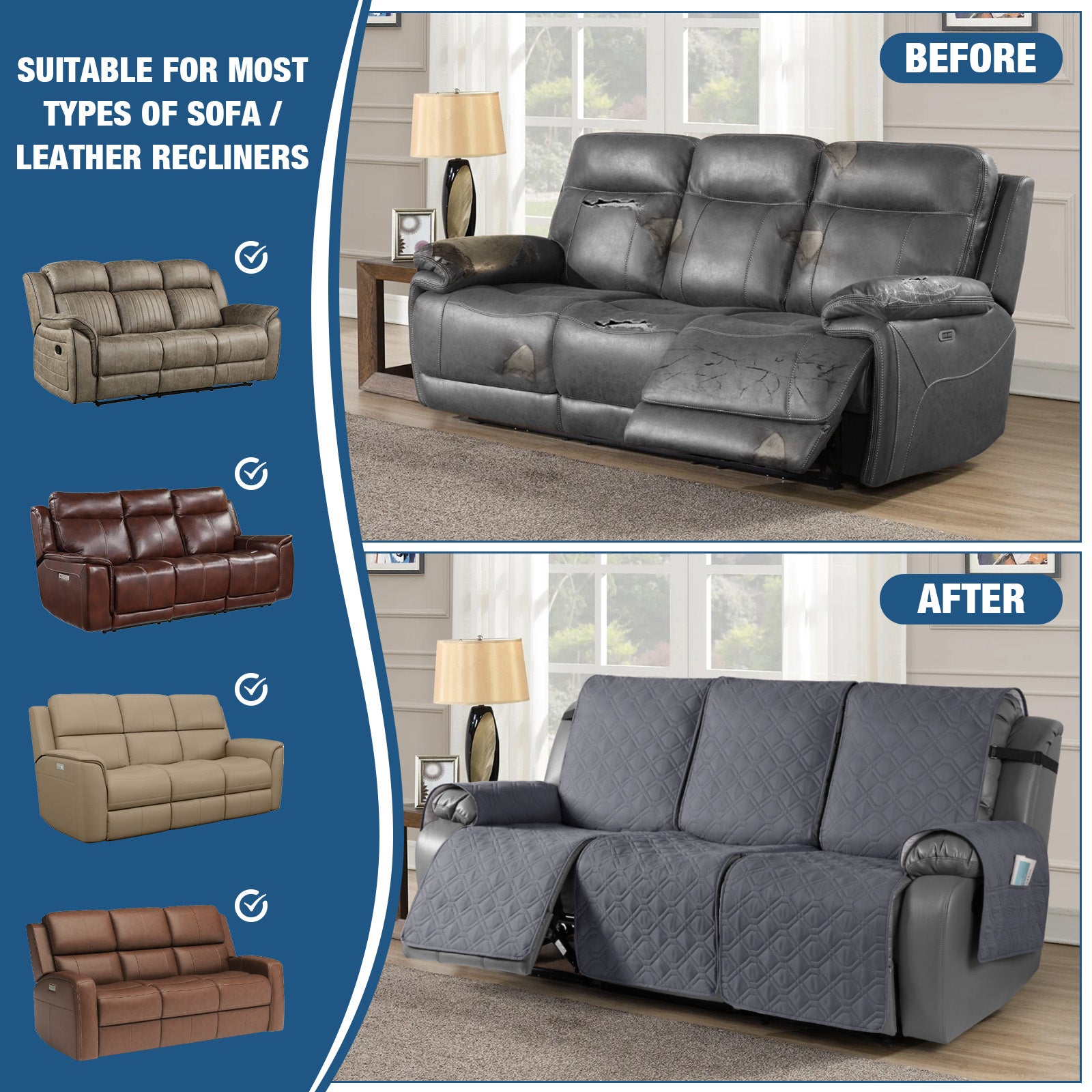 Engineered with a high-density waterproof layer to shield your recliner from accidental spills, pet accidents (urine), and everyday messes. This quilted recliner cover provides a vital barrier, giving you plenty of time to wipe away liquids before they reach your recliner chair.