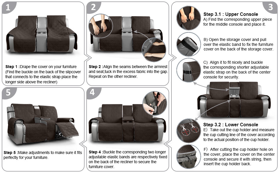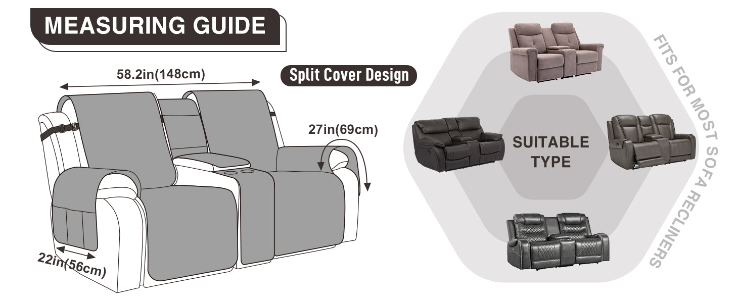 100% Waterproof Recliner Cover with Center Console -2 Seat /3 Seat
