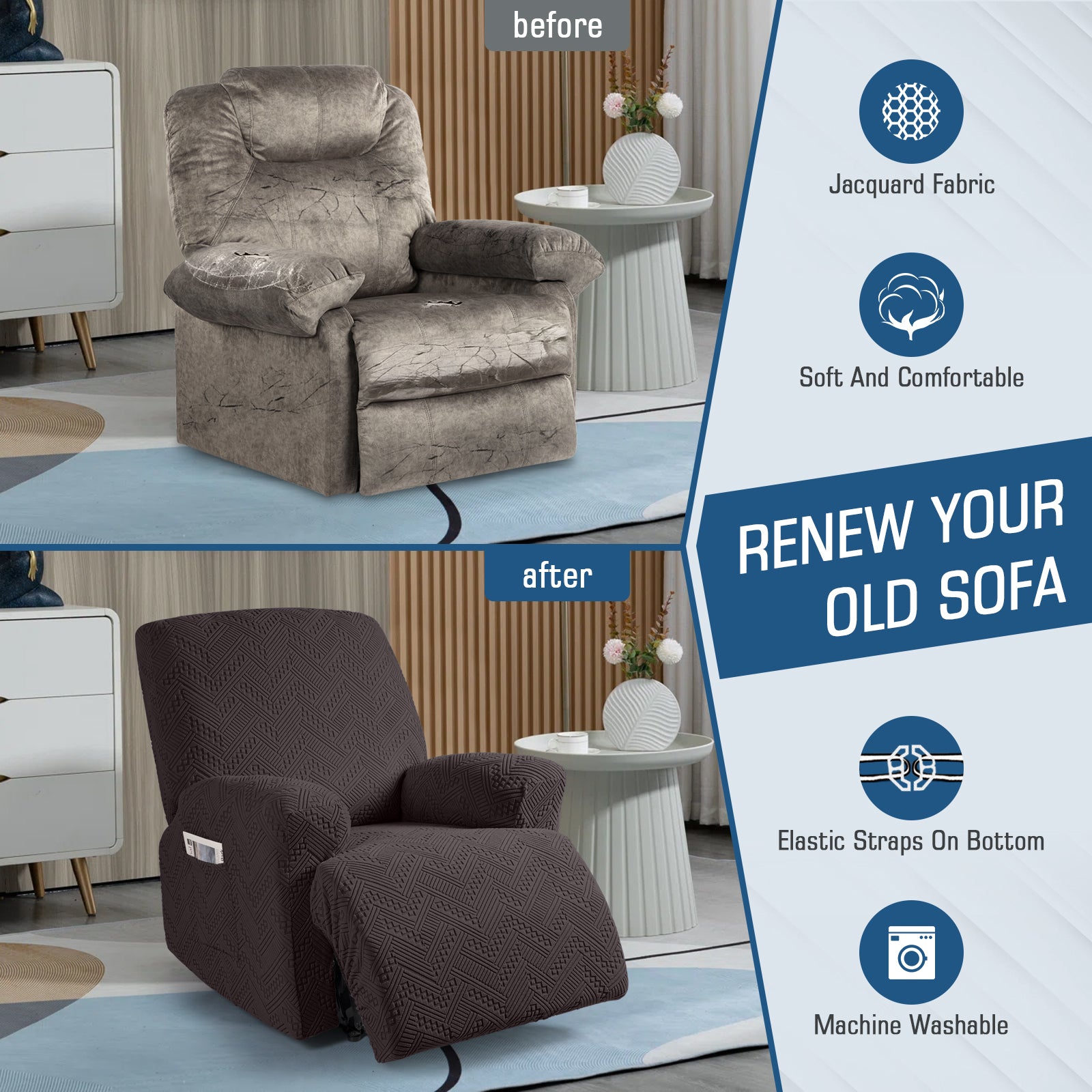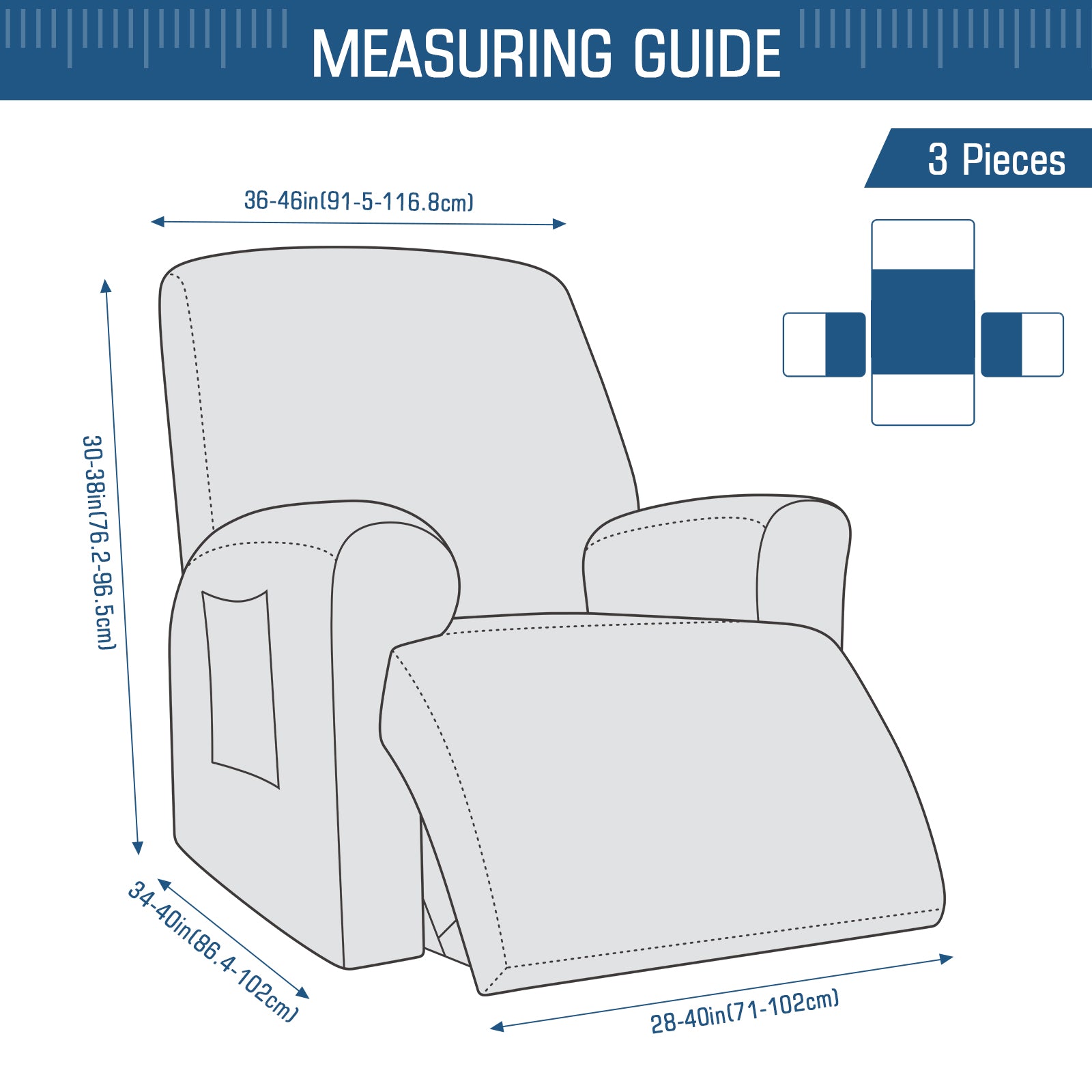 - 【SIZE】:Recliner chair cover is made of super-stretchy fabric that fits around every corner of the recliner, with an elastic bottom designed to fit perfectly. Suitable for recliners with seats between 28-40 inches wide. Please refer to the size picture before purchasing.