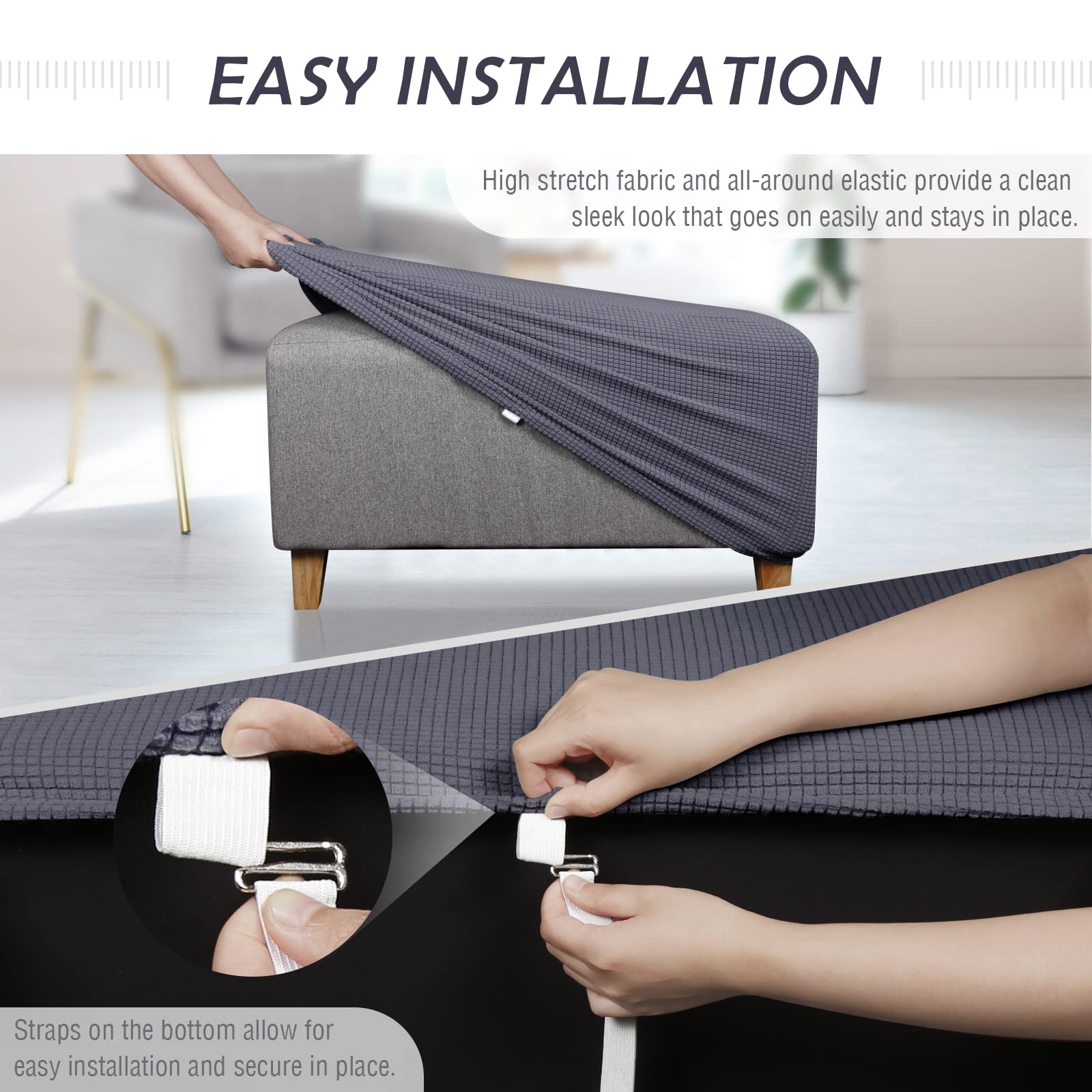- Perfect Fit.:Thanks to the high stretchy fabric, TAOCOCO slipcovers for ottoman are flexible enough to cloaks your entire seat and fits snugly. Moreover, the elastic band sewn in the hem and buckle strap allow for easy installation and secure in place, won't slip off randomly during use, convenient for you to change the ottoman cover regularly.